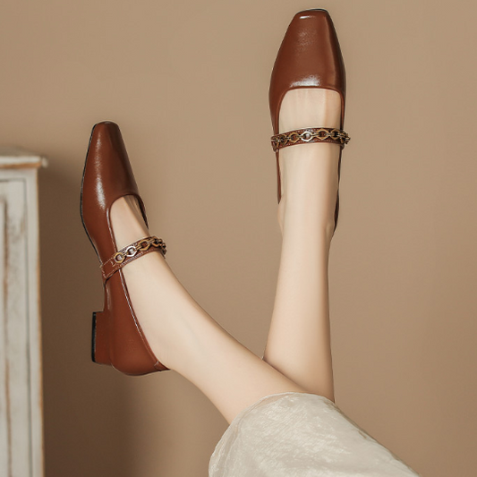 French Retro Square Head Low-heeled Mary Janes
