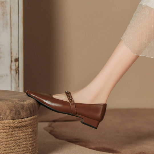 - Versatile flat silhouette that pairs effortlessly with dresses, skirts or tailored trousers.